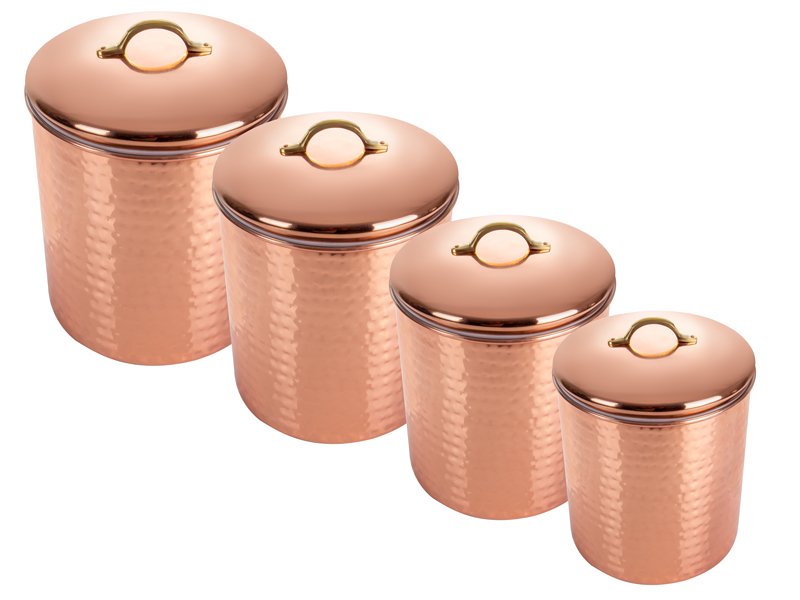 Набір із 4-х банок для зберігання сипких продуктів Elegance (20 см, 18 см, 16 см, 12 см) – це гармонійне поєднання практичності та вишуканого стилю. Кожна банка виготовлена з міцного матеріалу з благородним мідним відтінком, який надає аксесуарам преміальний вигляд і робить їх гідною окрасою будь-якої кухні.