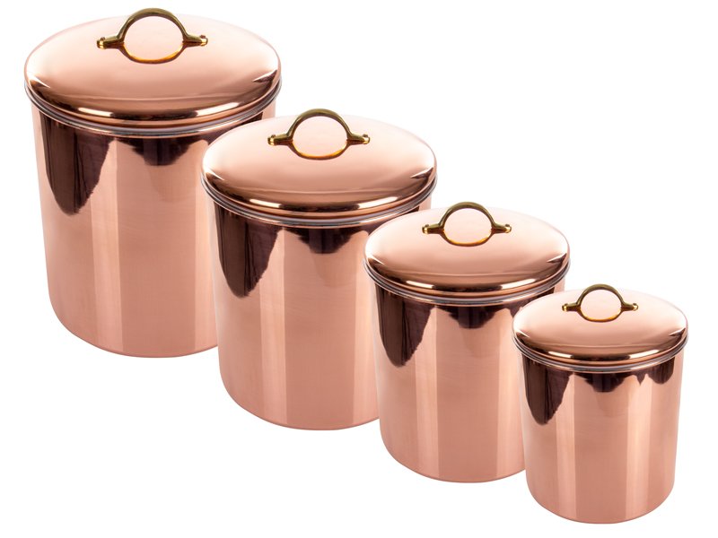 Набір із 4-х банок для зберігання сипких продуктів Elegance (20 см, 18 см, 16 см, 12 см) – це гармонійне поєднання практичності та вишуканого стилю. Кожна банка виготовлена з міцного матеріалу з благородним мідним відтінком, який надає аксесуарам преміальний вигляд і робить їх гідною окрасою будь-якої кухні.