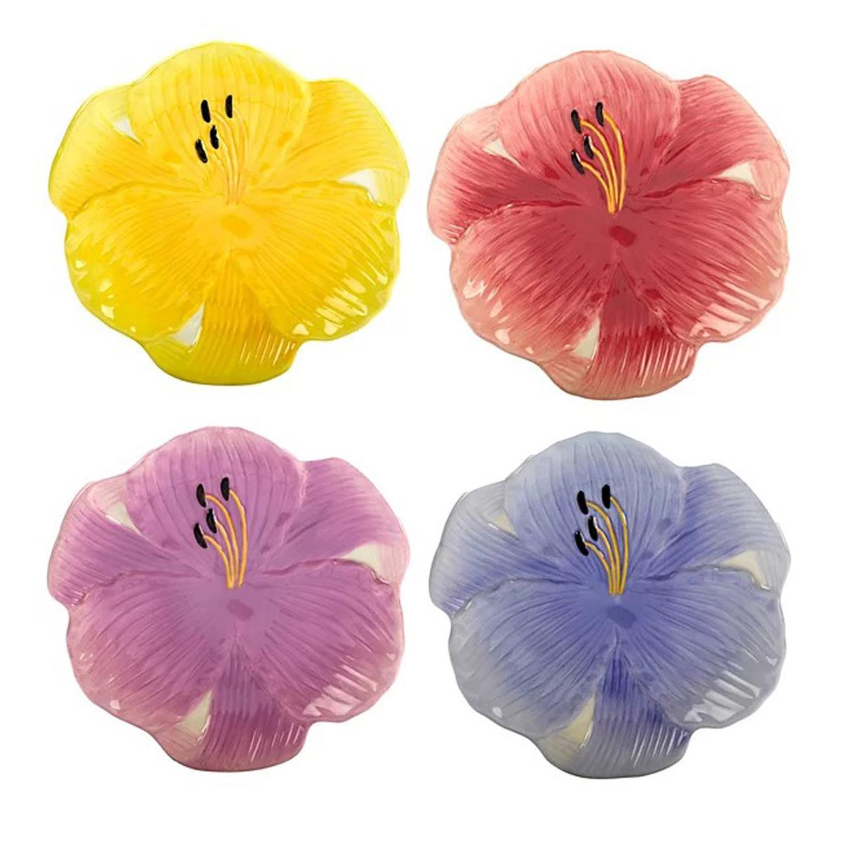 - 4 десертные тарелки в форме объемных цветков разных цветов