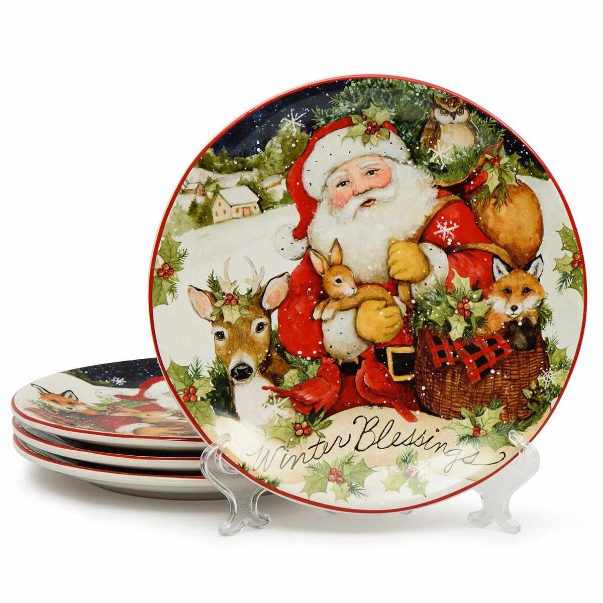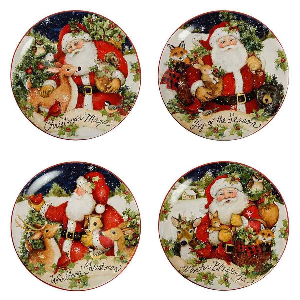 Набір з 4-х тарілок для салату Різдво з Сантою