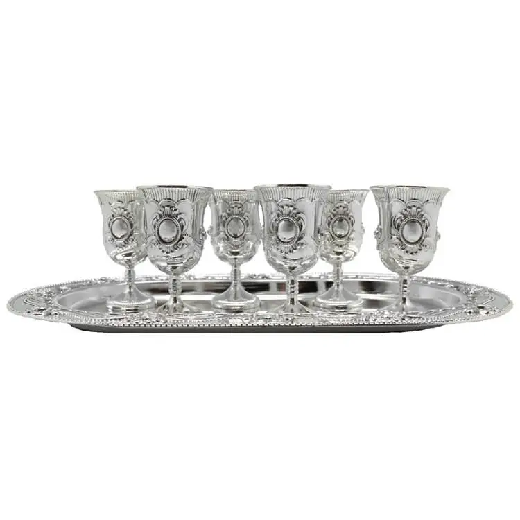 Этот набор станет идеальным украшением праздничного стола, подчёркивая торжественность момента и вкус его владельца. Серебристые переливы и декоративная изысканность — такой подарок будет уместен и в семейном кругу, и на званом ужине. А поднос с изящным обрамлением завершает картину полной гармонии и стиля.