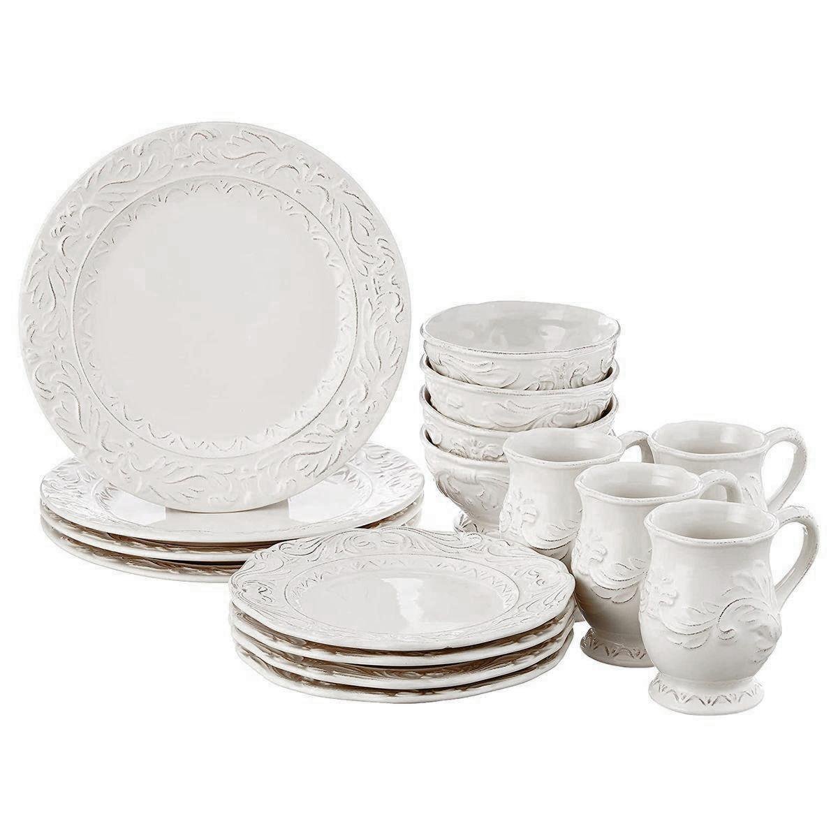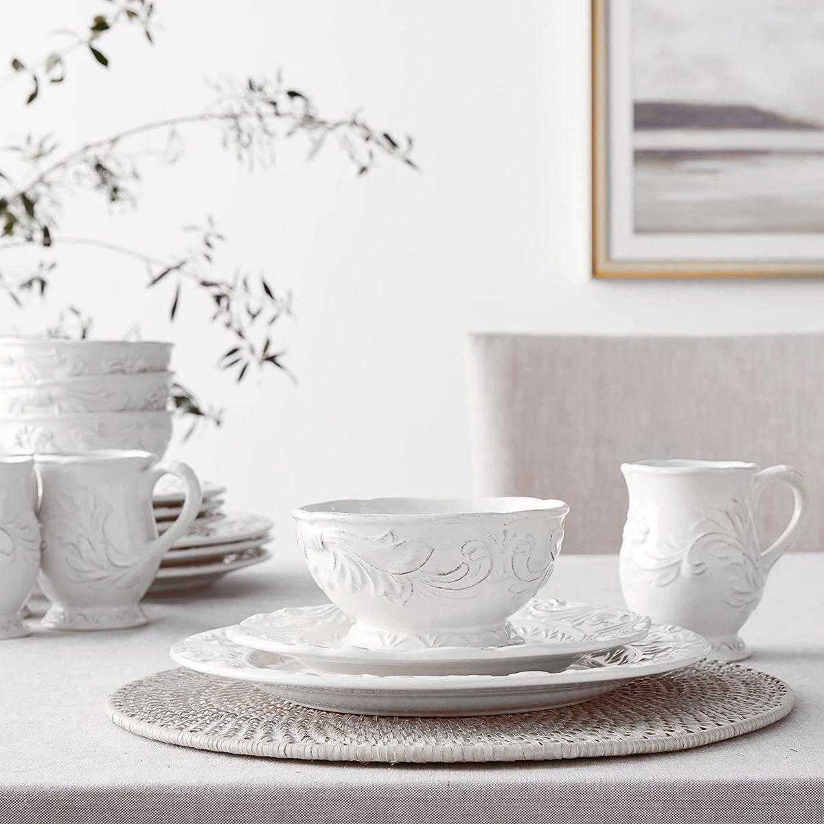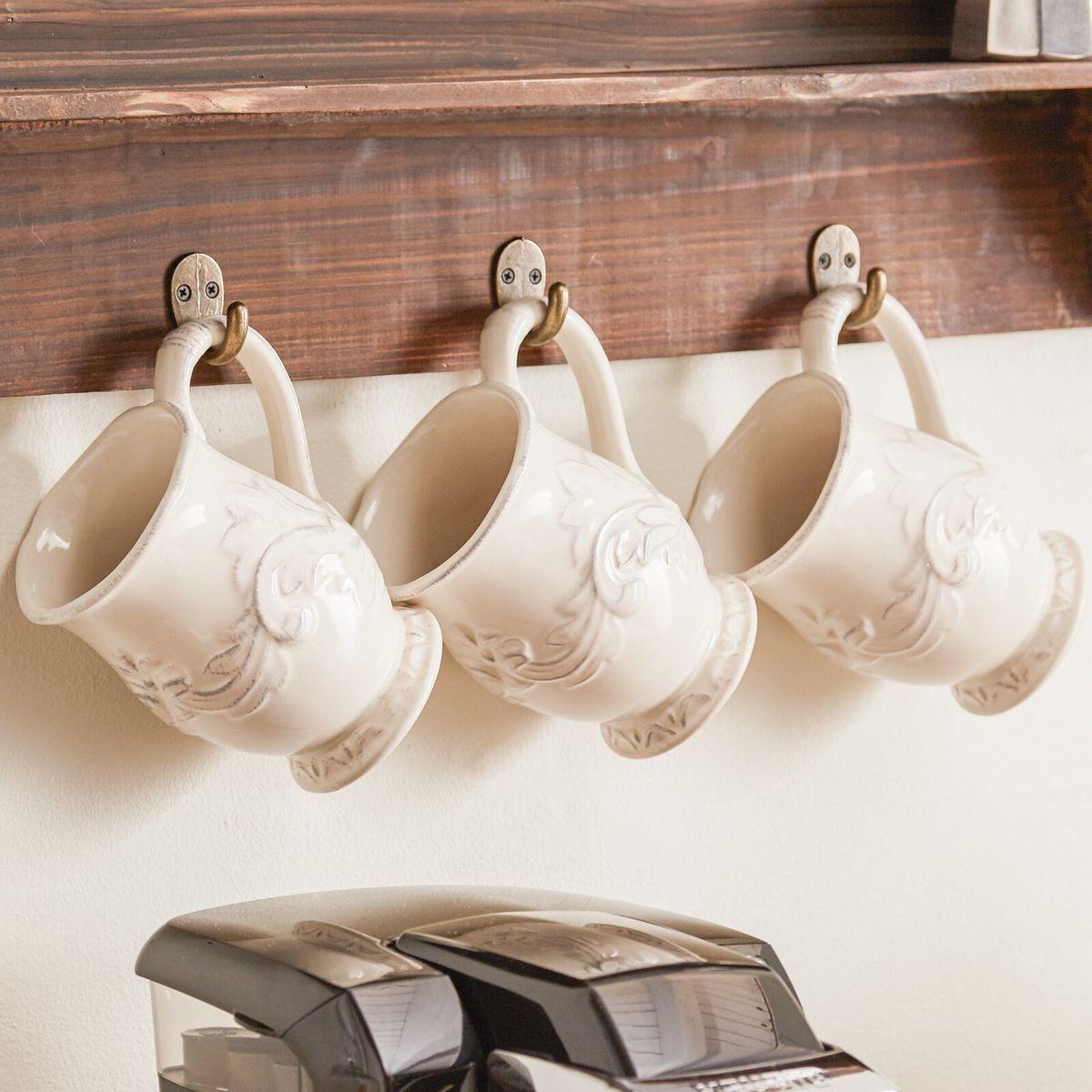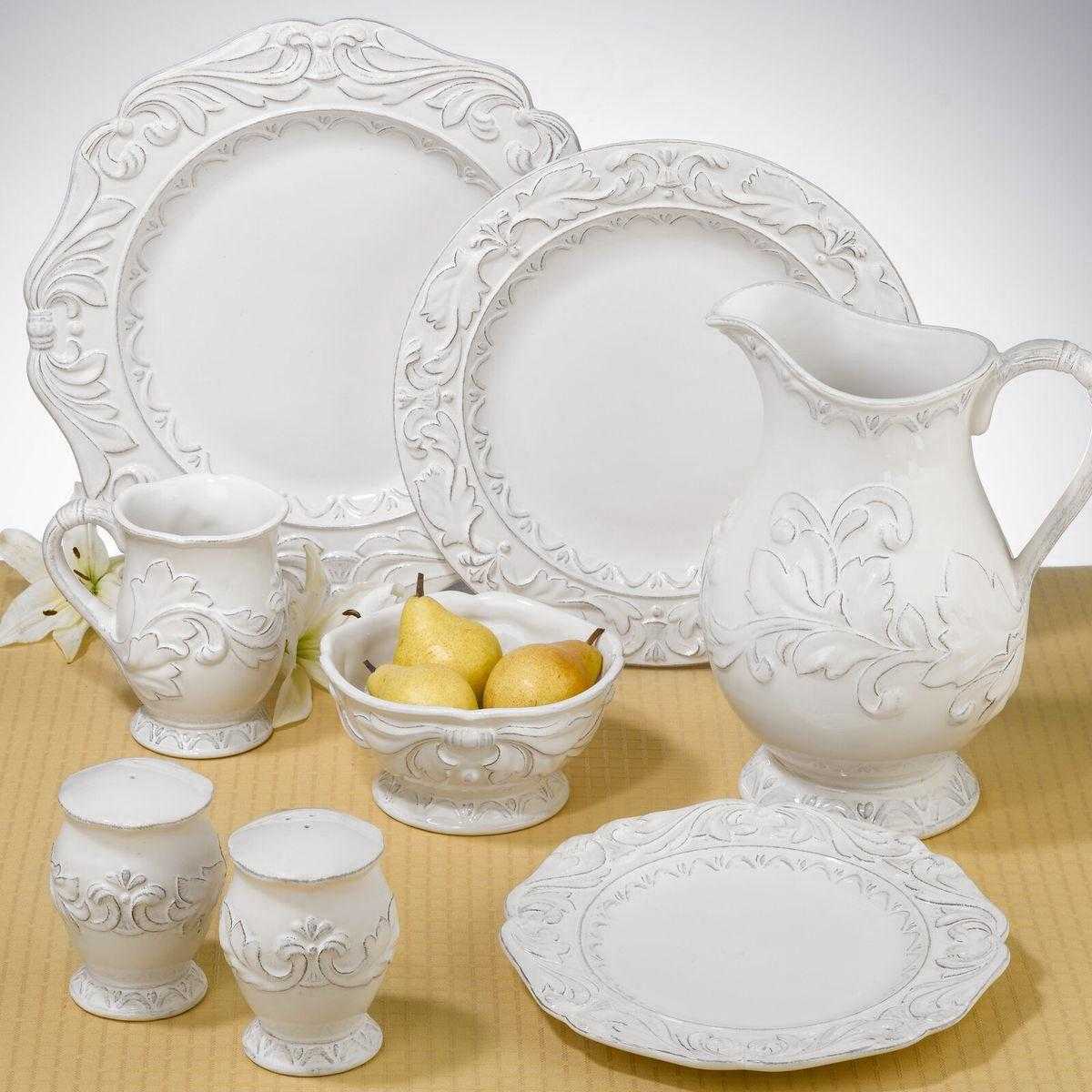 Кружки элегантного оттенка айвори украшают тисненые зубчатые листья аканта – величественного символа триумфа. Эффект патины, едва коснувшийся рельефных узоров, придает изделиям винтажный вид.
