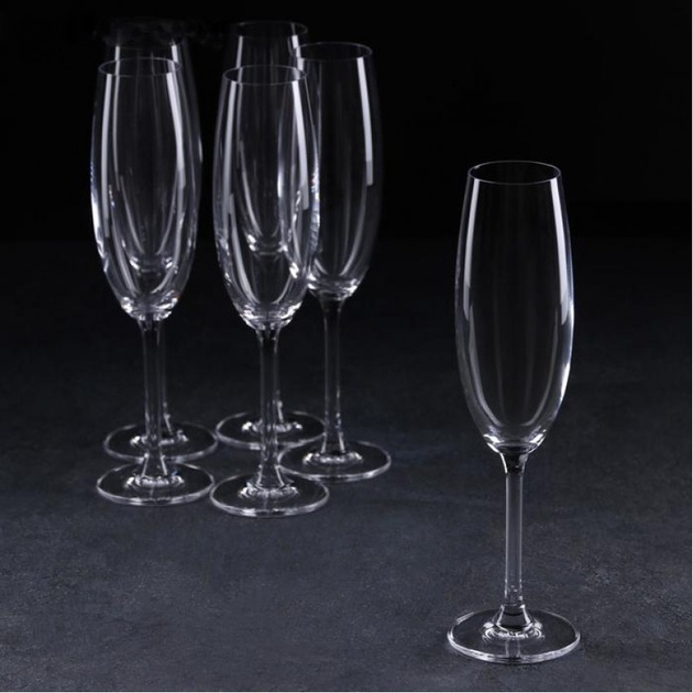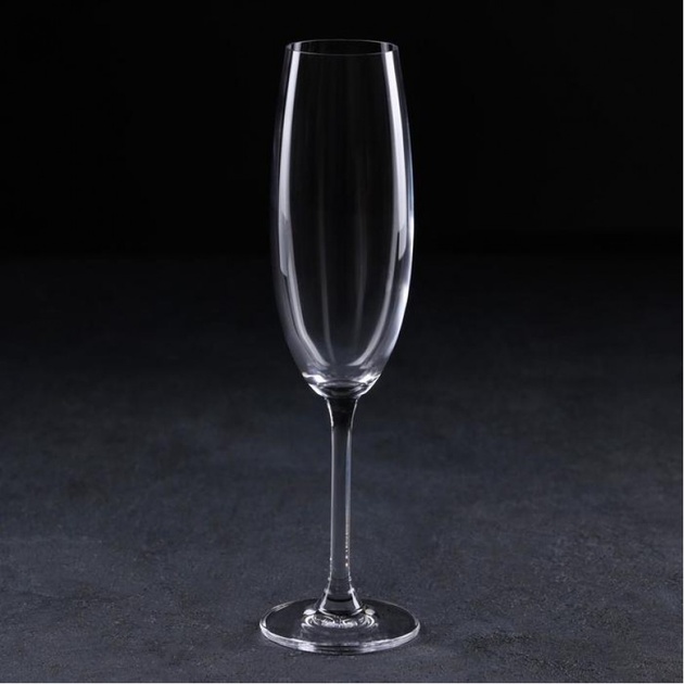 Об’єм кожного келиха — 220 мл, що ідеально підходить для подачі ігристих вин і шампанського. Тонке, але міцне богемське скло дарує легкість у руці, а відсутність декору робить набір універсальним: він доречний як на святковому столі, так і на діловому фуршеті.