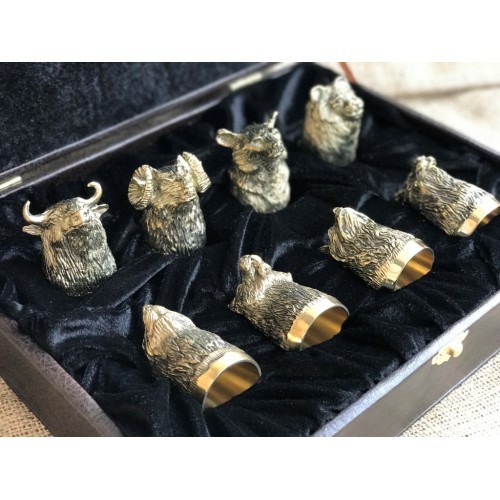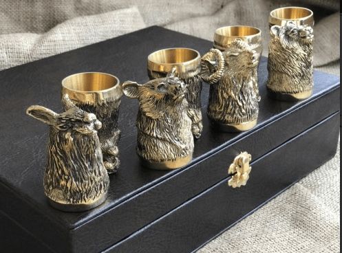 Комплект з 8 чарок у формі різних тварин, виконаних методом художнього лиття з бронзи. Стаканчик із нержавіючої сталі ємністю 30 мл.