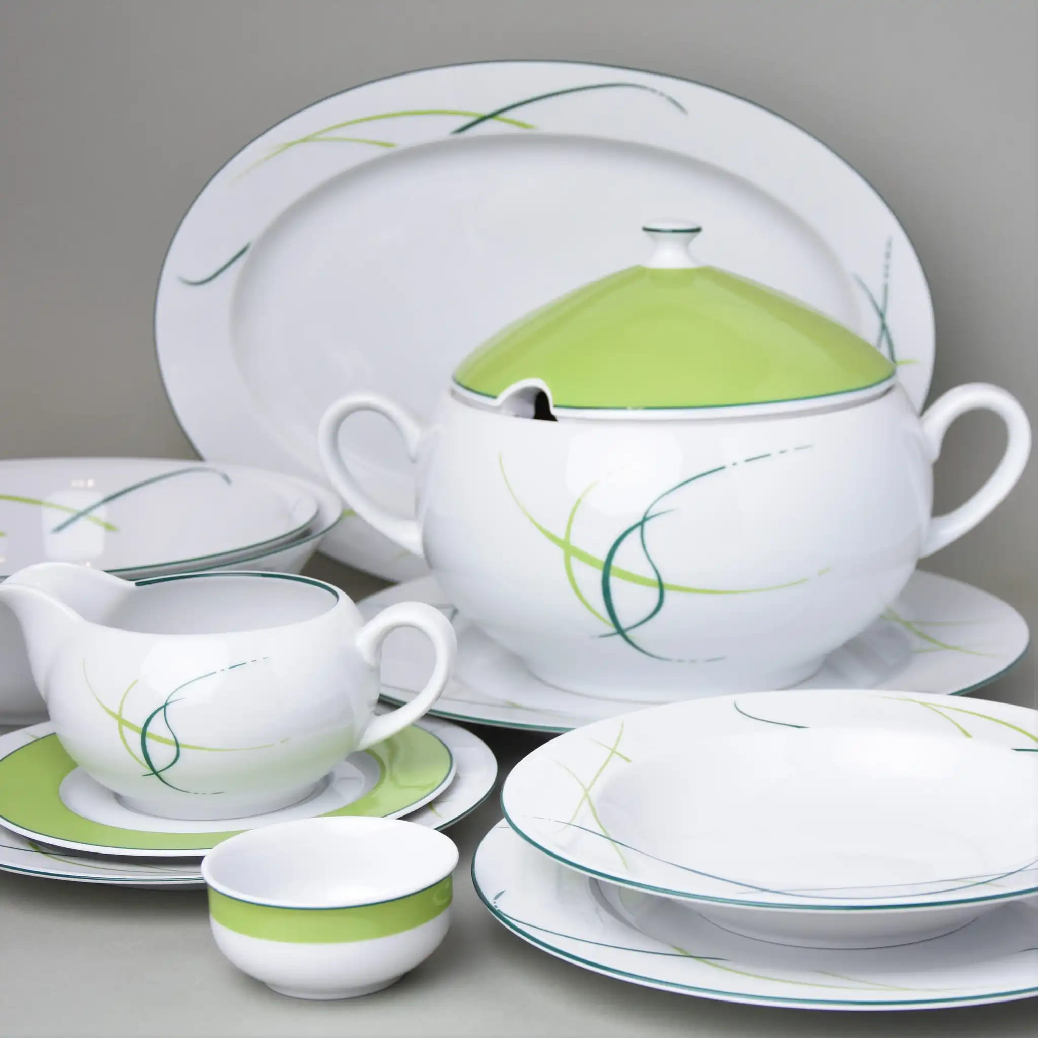 Набор бульонниц с блюдцами цветных Thun Opal 12 пр/6 п с зеленым кантом
