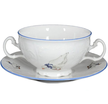 Набор бульонниц с блюдцами фарфоровый с рисунком Bernadotte Гуси 12 пр/360 мл
