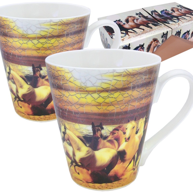 Набор из двух фарфоровых кружек "Лошади" -идеальный подарок для тех, кто любит лошадей. На кружки нанесено изображение табуна красивых лошадей в движении