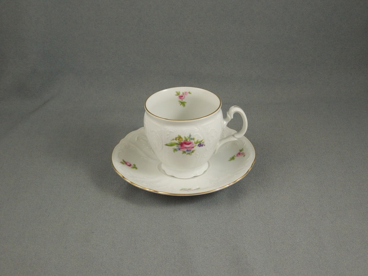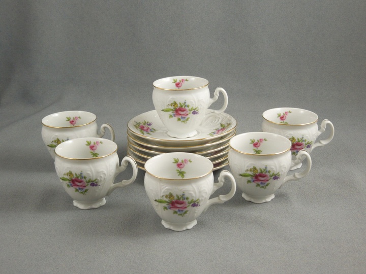 Набор чашек с блюдцами белого цвета с декором Thun Bernadotte Мейсенский Букет 90 мл/12 пр с золотым ободком