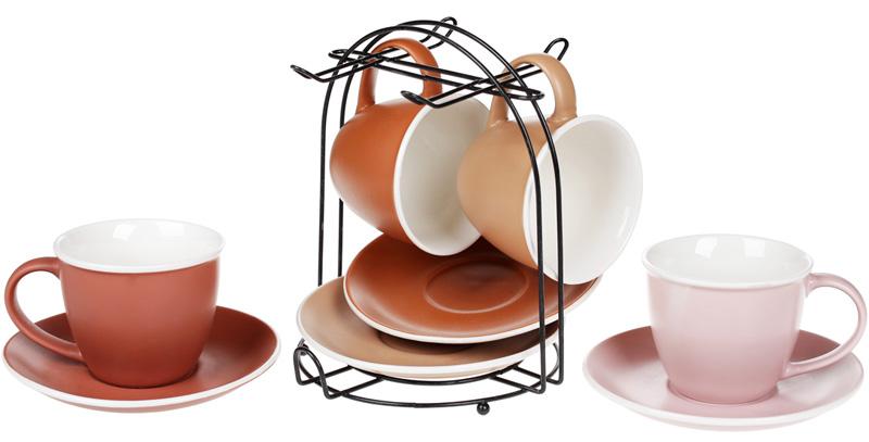 У наборі 4 кольори: бежевий, бузковий, помаранчевий та теракотовий.Кольорове матове глазурування та білий обідок.