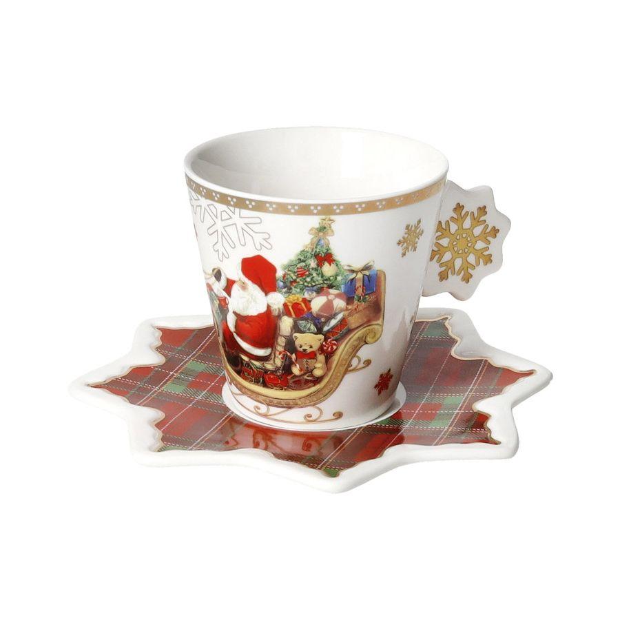 Набор чайных чашек с 8-ми угольными блюдцами Christmas 2 шт.