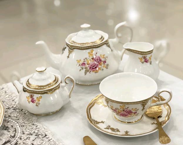 Посуд у наборі виготовлений з фарфору. Порцеляна абсолютно гладка і не пориста, не вбирає запахи і не змінює свій колір. Фарфор вищої якості фабричного виробництва, зроблений за унікальними на сьогоднішній день технологіями. Сервіз буде виглядати стильно і сучасно на будь-якому столі, чи то святковий, чи повсякденний. Виробництво – Південна Корея.