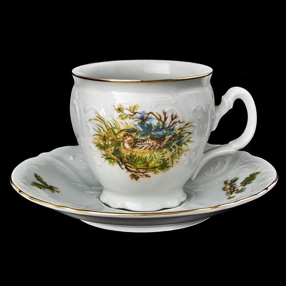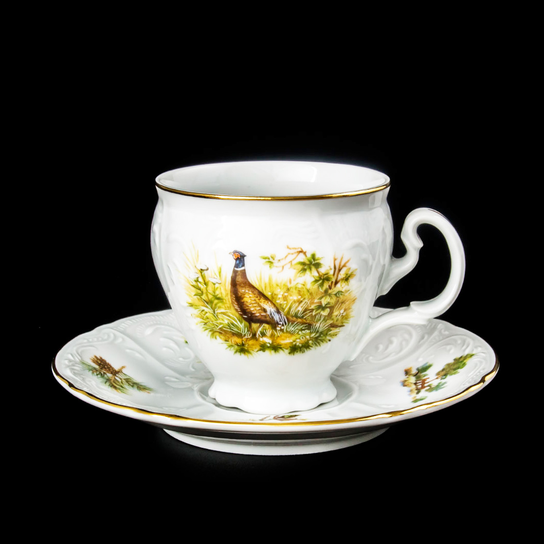 Набор цветных чашек с блюдцами с рисунком Bernadotte Охота 240 мл/12 пр с золотым ободком