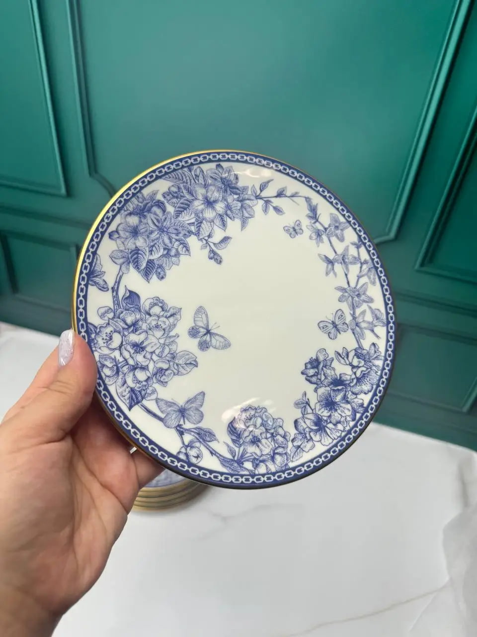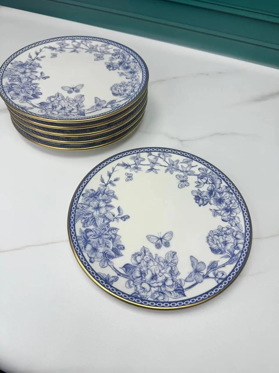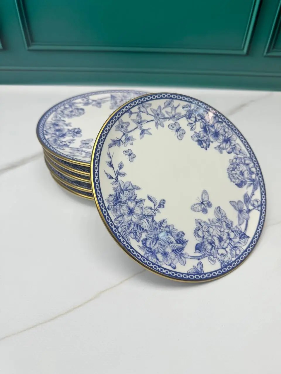 Набор десертных керамических тарелок Butterfly 6 шт/ 19 см, Цвет: Синий, Диаметр посуды: 19 см