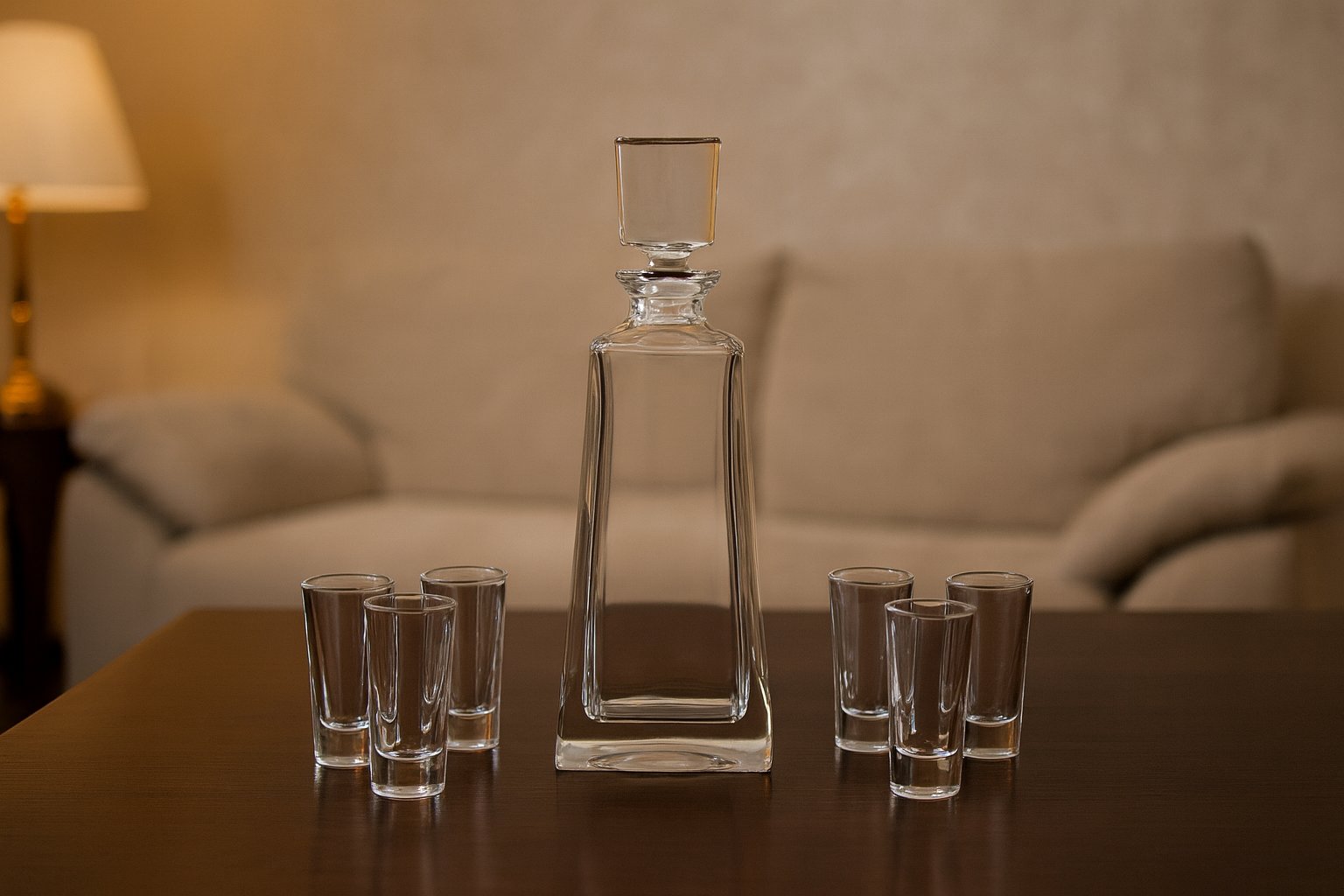 Комплект подойдёт для подачи разных напитков — от классической настойки до ликера. Практичное решение для дома, которое будет служить долго и всегда выглядеть стильно.