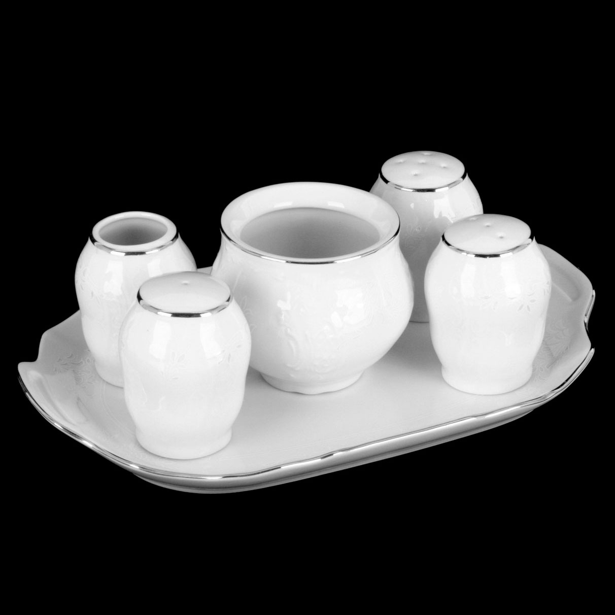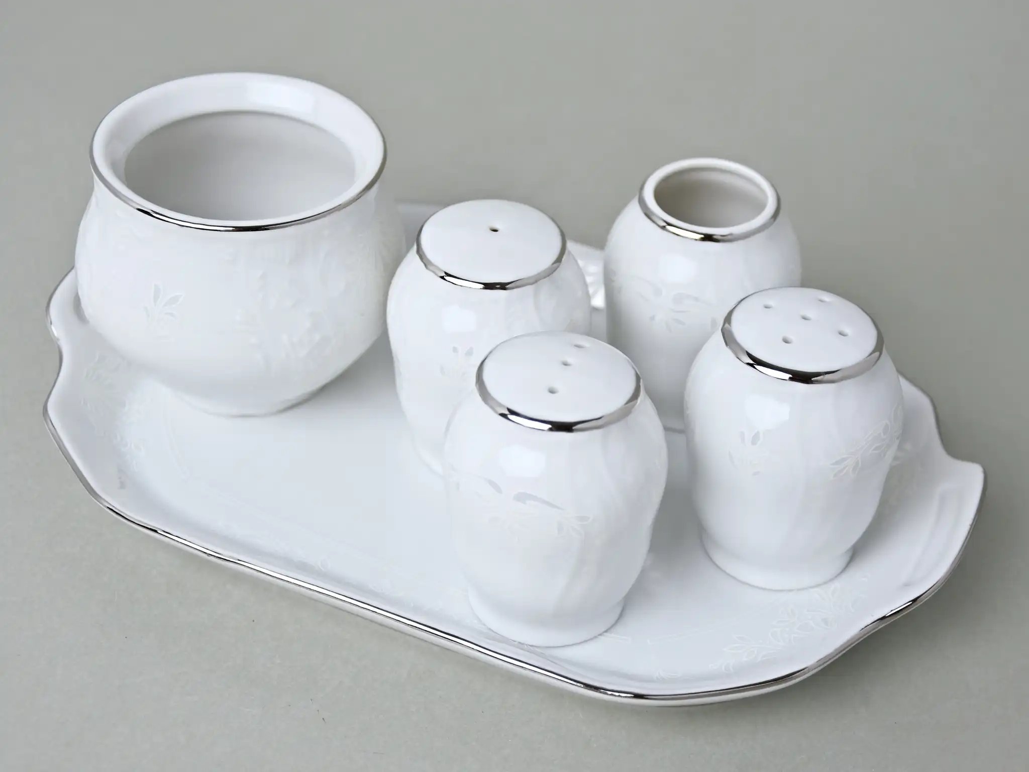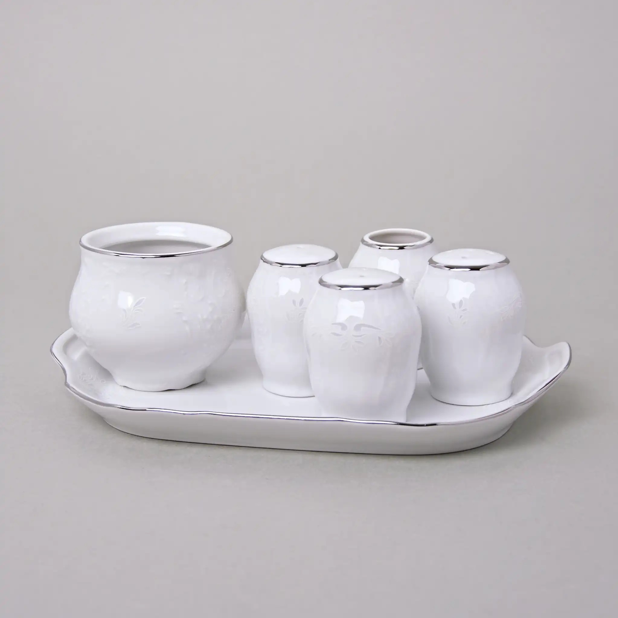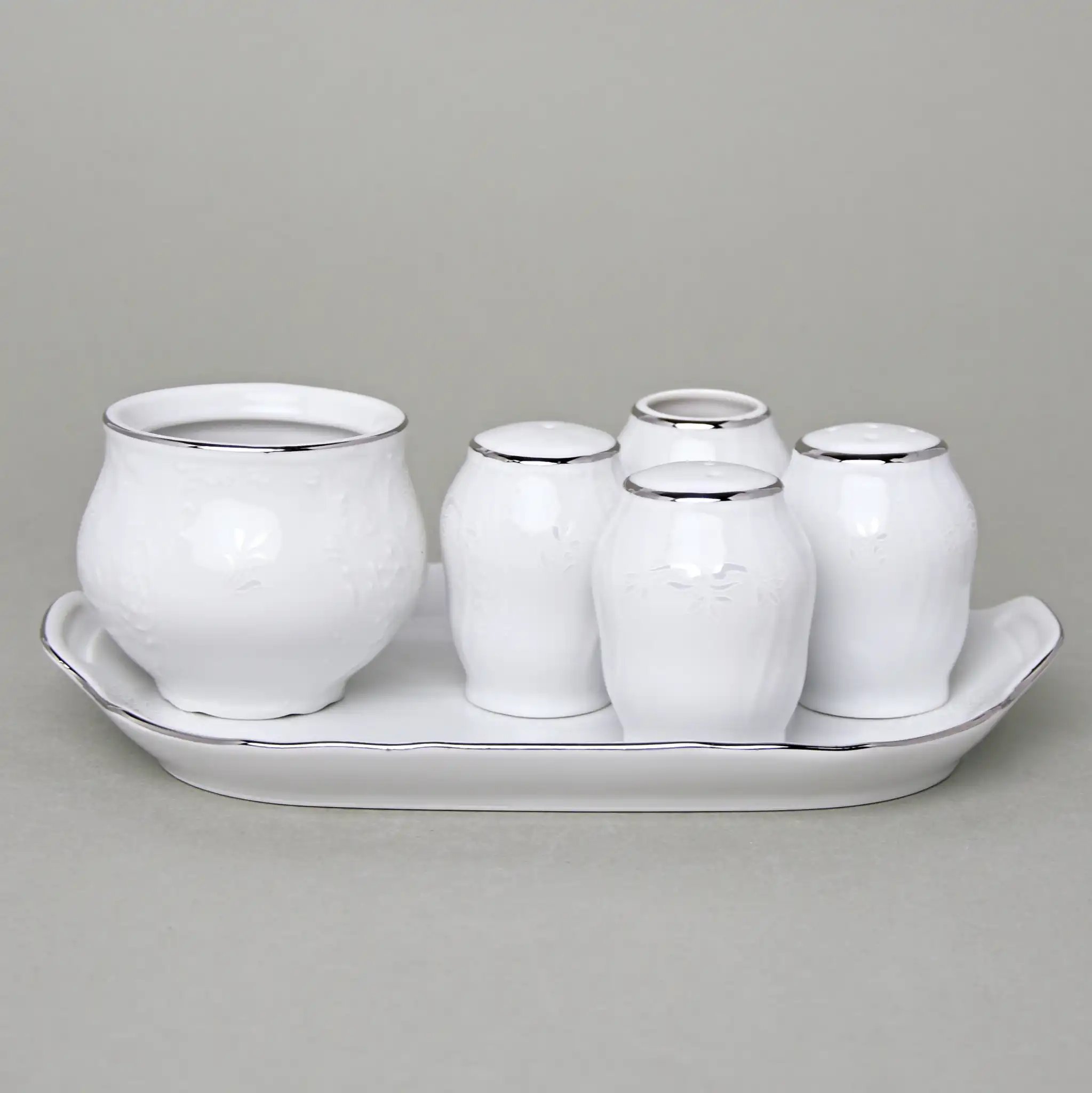 Набор для специй фарфоровый белого цвета с платиновой отделкой Thun Bernadotte Невеста 7 пр