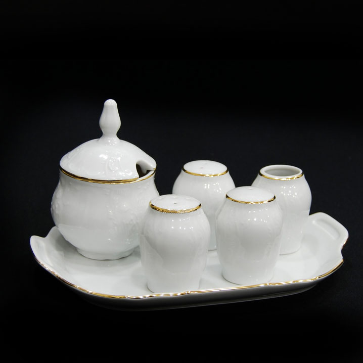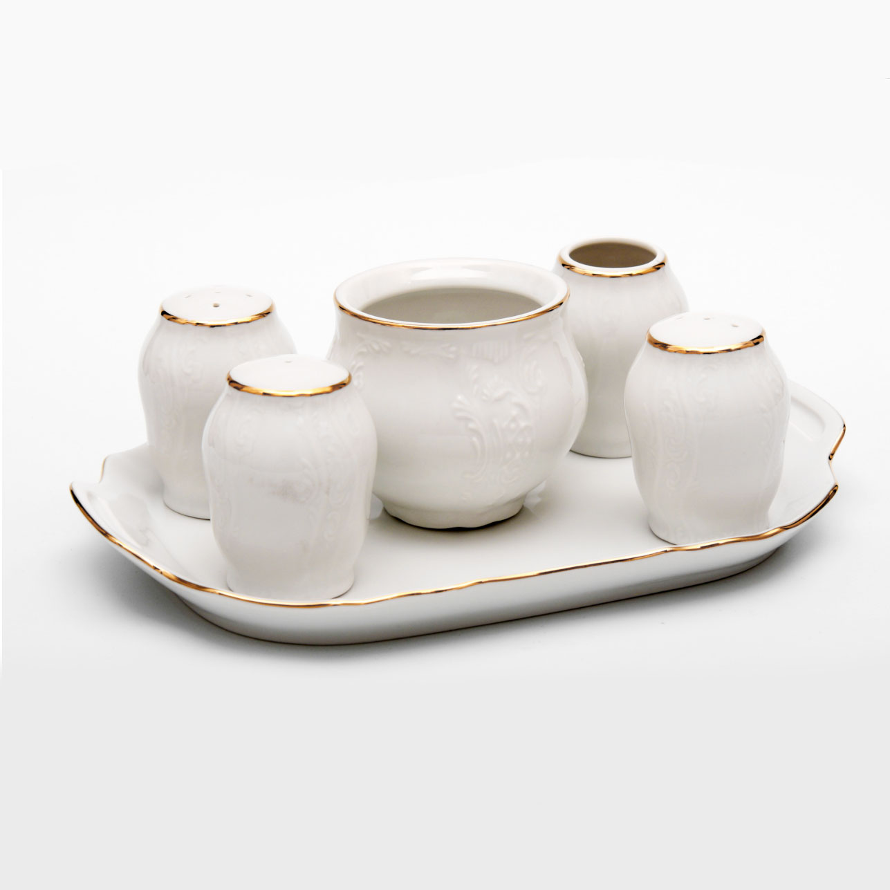 Набор для специй фарфоровый белого цвета с золотыми кантом Thun Bernadotte Обводка Золото 7 пр