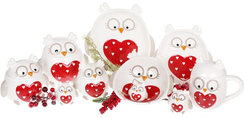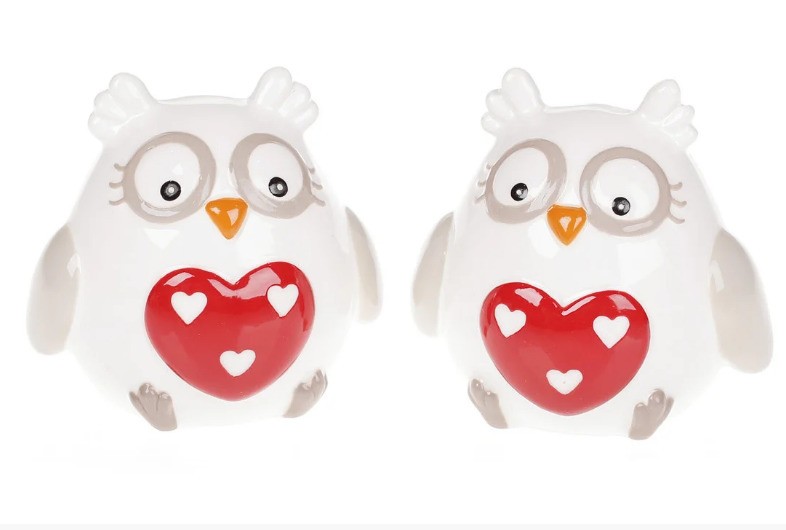 Набор керамических спецовников: солонка и перечница "Совушка с сердцем" - милая керамическая посуда для уютной атмосферы на кухне. Белые спецовники с декором - совушка с большим красным сердцем. Оригинальная форма и дизайн зарядит позитивом при ежедневном использовании, внесут яркие веселые нотки в сервировку стола. Размер спецовника: 6.8х5.4х6.2см.