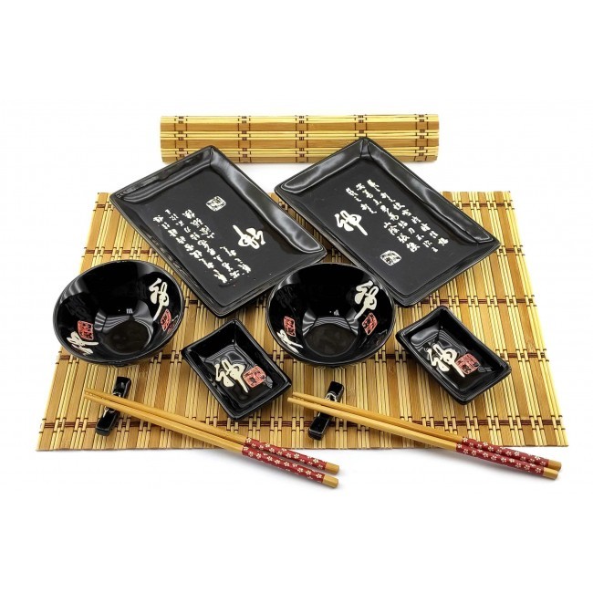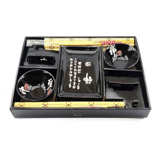 Набор для суши на 2 персоны с пиалами черный Иероглифы