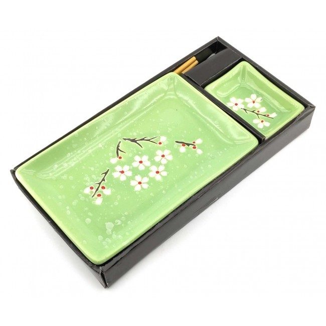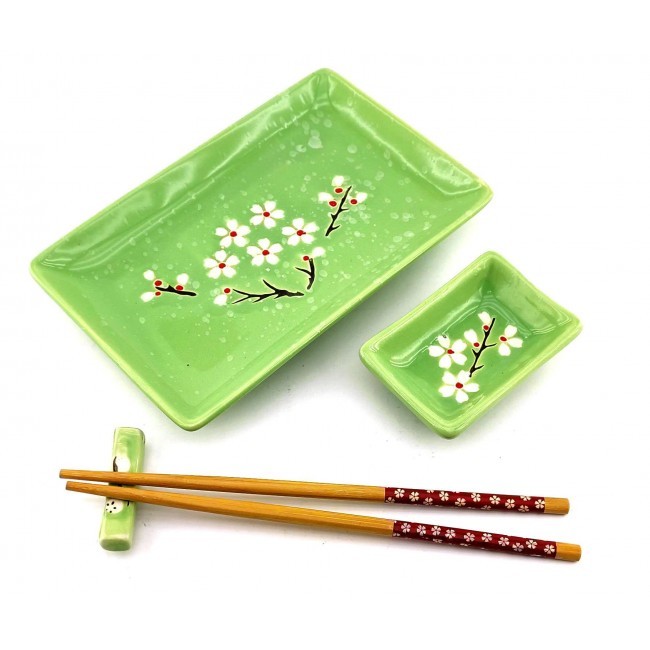Прекрасний набір для поціновувачів східної кухні. Набір розрахований на одну особу. Легкі та гладкі бамбукові палички, які не розмокають та не деформуються при правильному зберіганні. Набір упакований у картонну коробку з пластиковою кришкою. Кожен предмет набору має свій окремий осередок для зручного зберігання.