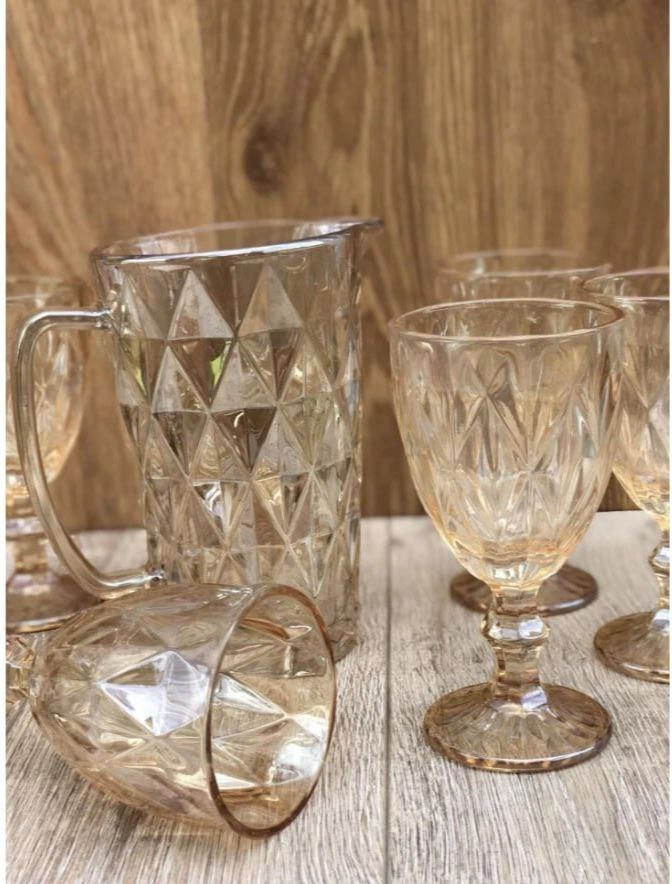Коллекция Crystal Echoes — это гармония формы, блеска и практичности. Каждый набор изысканно сочетает бокалы и кувшин в едином стиле, создавая элегантный акцент для любого стола. Прозрачные грани стекла играют светом и добавляют глубины, подчёркивая вкус напитков и эстетичность сервировки.