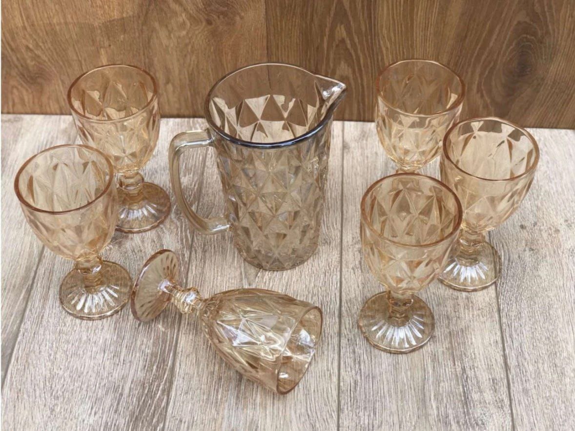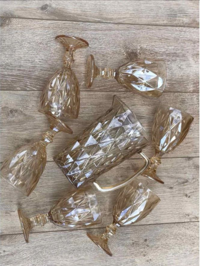 Набор для вина и напитков графин с бокалами на 6 персон янтарный Crystal Echoes