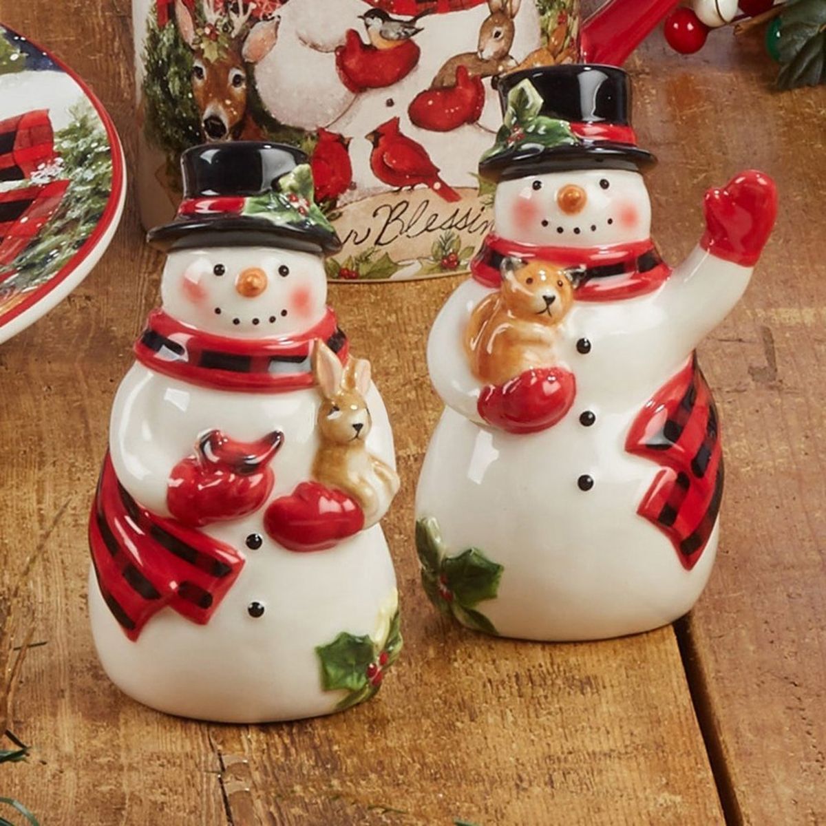 В праздничной сервировке нет мелочей — каждая деталь создаёт настроение! Эти милые снеговички не просто украсят стол, но и внесут в него частицу уюта и доброты. Небольшие фигурки выполнены в виде солонки и перечницы — функциональных аксессуаров, без которых не обходится ни одно торжественное застолье.
