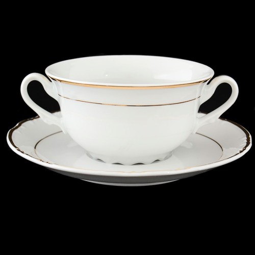 Набір порцелянових бульйонниць із блюдцями білого кольору із золотою окантовкою Thun Constance Обведення Золото 12 пр/6 п