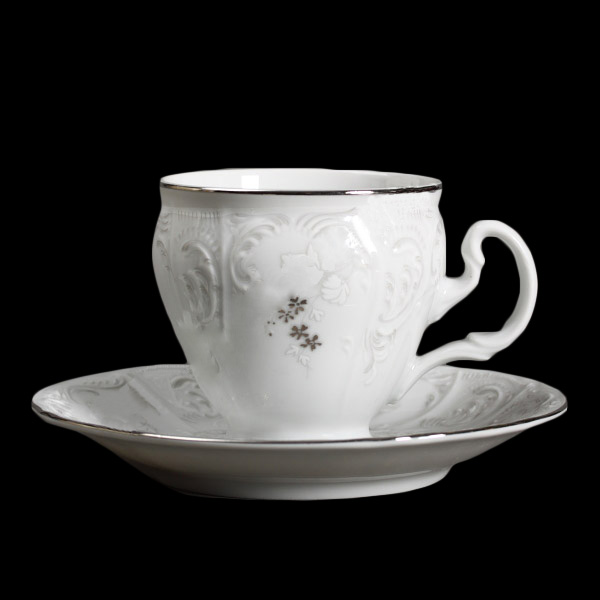 Набор фарфоровых чашек с блюдцами белого цвета с орнаментом Bernadotte Белоснежные Вензеля 90 мл/12 пр