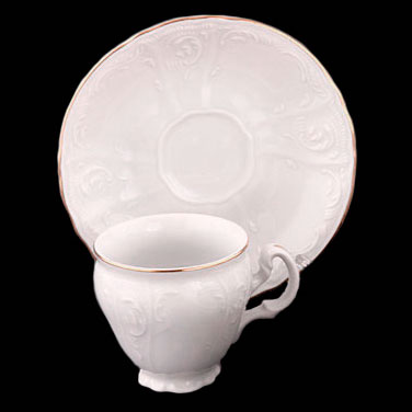 Набор фарфоровых чашек с блюдцами белого цвета с золотой обводкой Thun Bernadotte Обводка Золото 90 мл/12 пр