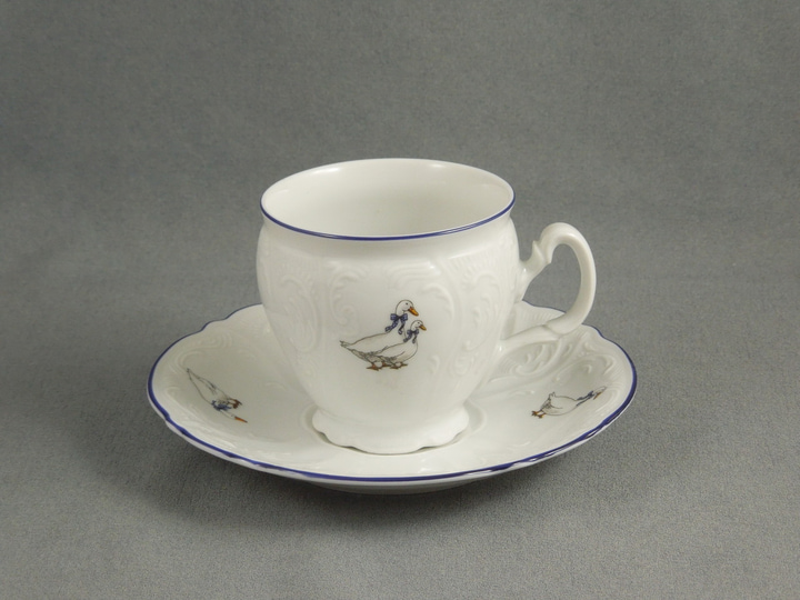 Набор фарфоровых чашек с блюдцами Bernadotte Гуси 90 мл/12 пр с синей каймой
