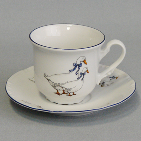 Набір порцелянових чашок з блюдцями Thun Constance Гуси 160 мл/12 пр з синьою облямівкою