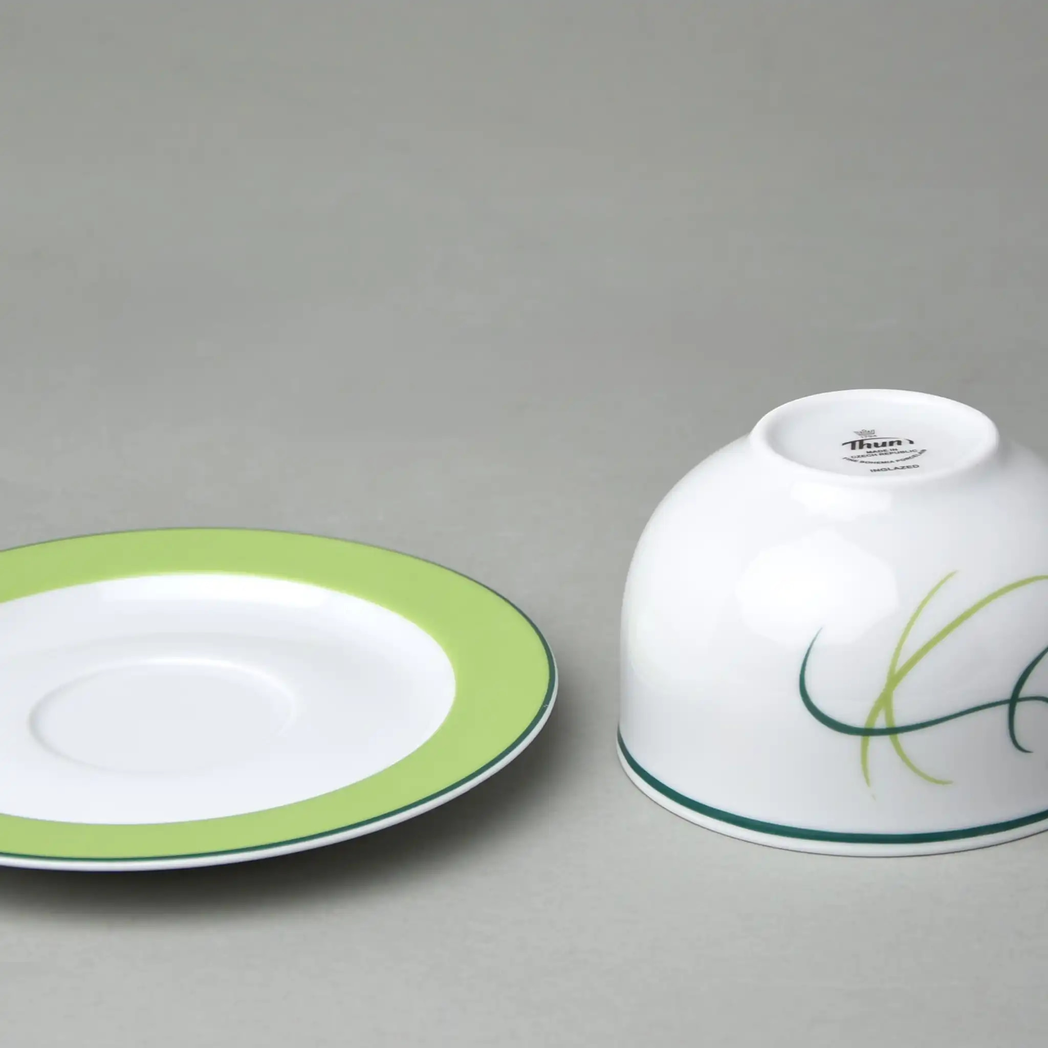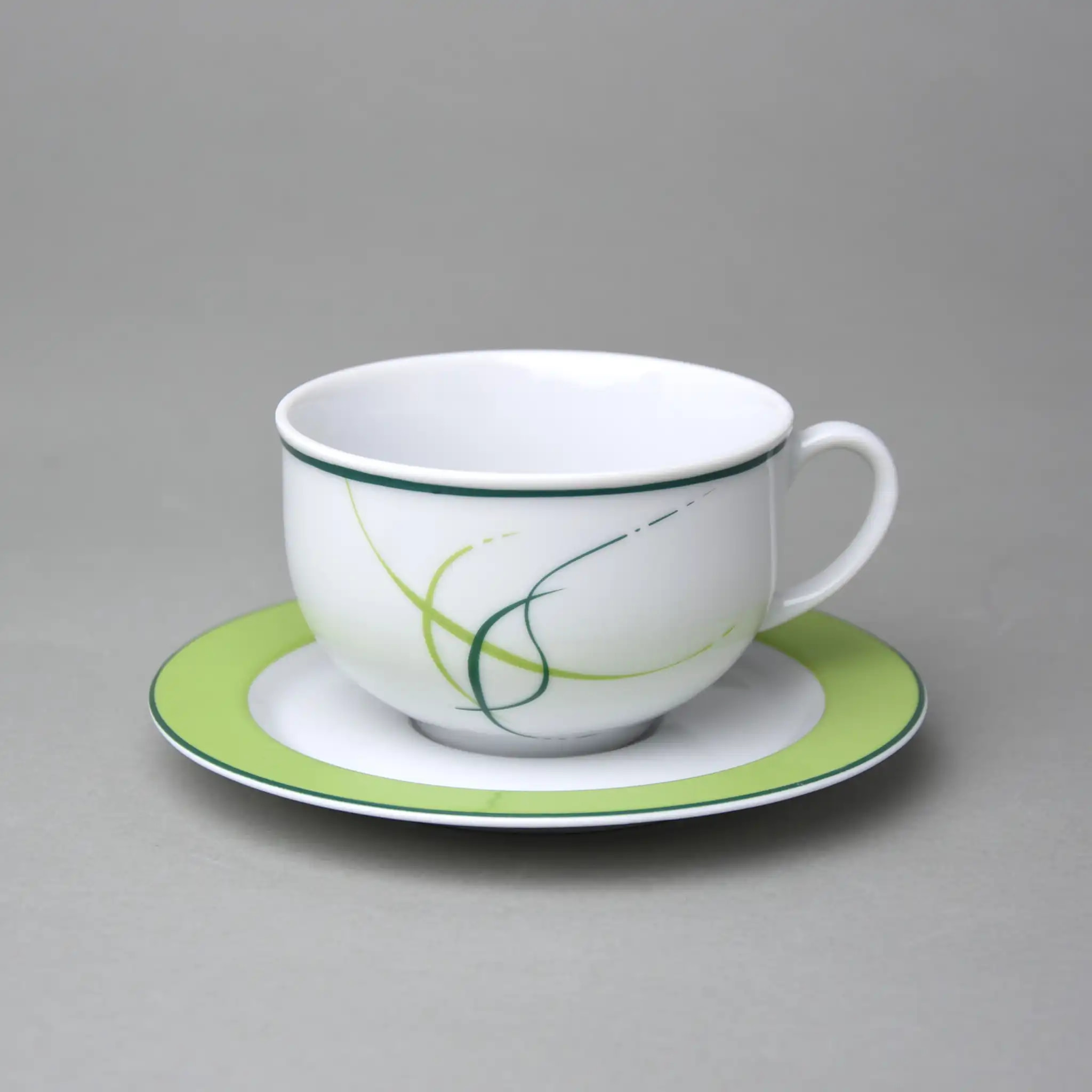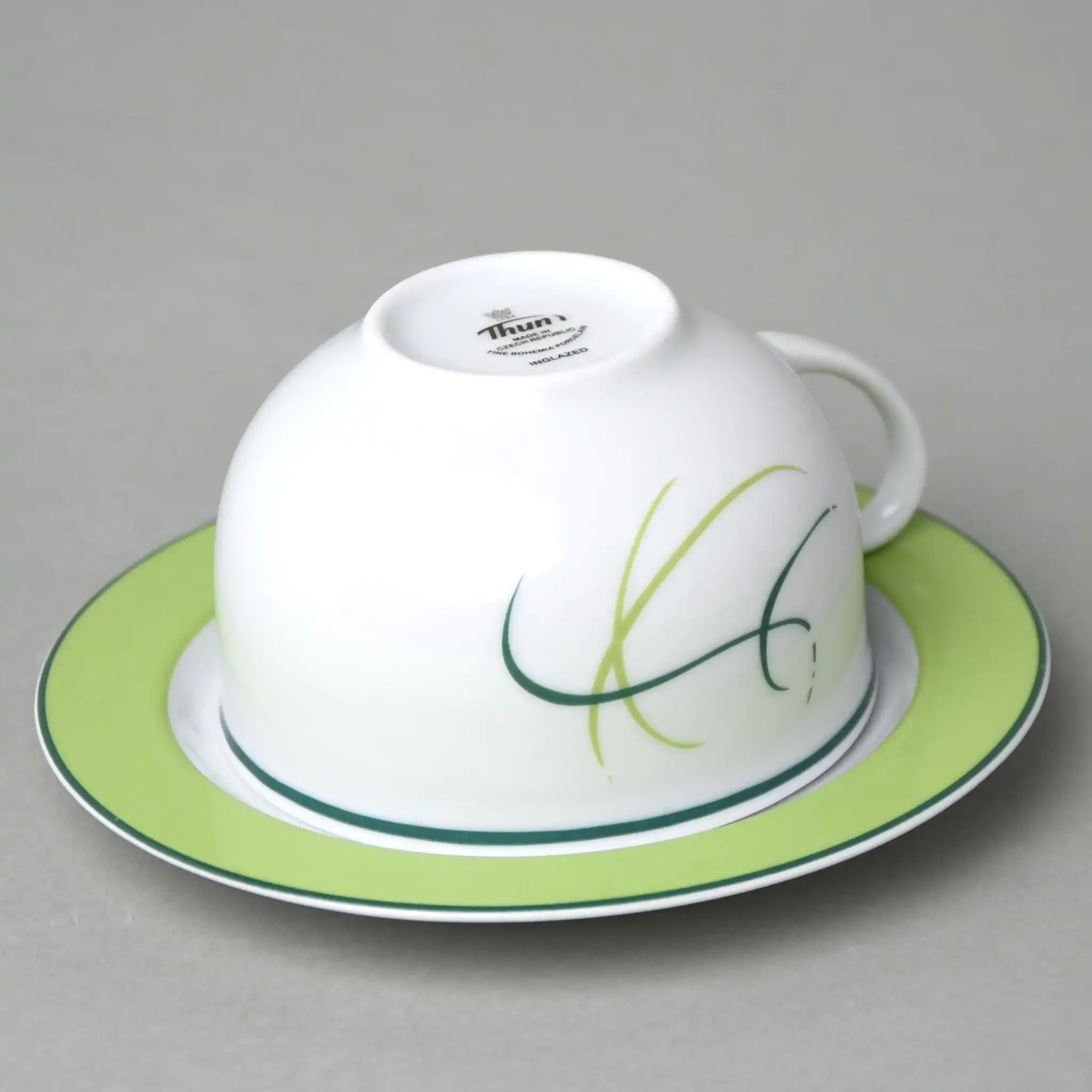 Набор фарфоровых чашек с блюдцами Thun Opal 390 мл/12 пр (выс.) с зеленой каймой (низ.)