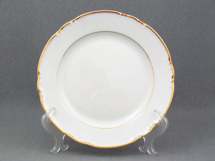Набор фарфоровых мелких тарелок белого цвета с золотым кантом Thun Constance Широкая Отводка Золото 21 см/6 шт