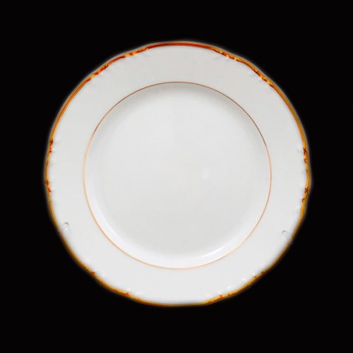 Набор фарфоровых мелких тарелок белого цвета с золотым окаймлением Thun Constance Широкая Отводка Золото 24 см/6 шт