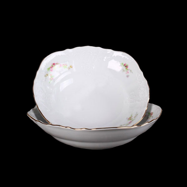 Одиночные салатники диаметром 23 и 25 см — настоящие универсалы. Они подойдут как для свежих овощей, так и для изысканных слоёных салатов, закусок или даже подачи фруктов на компанию. Их рельефный край и золотая окантовка придают фарфору изысканный вид, достойный торжественных моментов.
