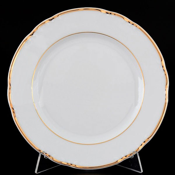 Набор фарфоровых тарелок десертных круглых белого цвета с золотой каймой Thun Constance Обед Золото 6 шт/19 см