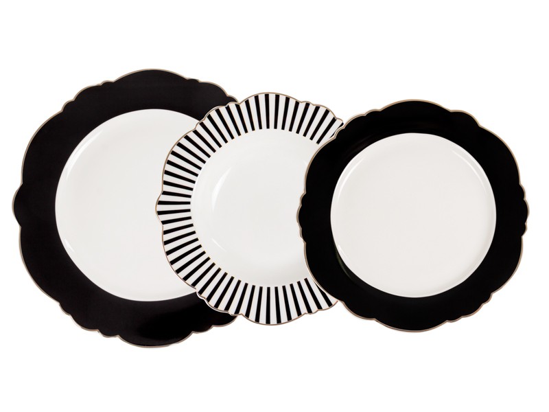 Набор фарфоровых тарелок на 2 персоны Red черно-белых