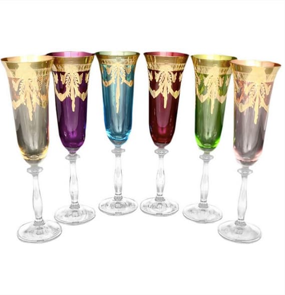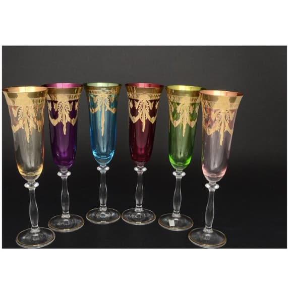 Набор хрустальных цветных фужеров Богемия Арлекино 190 мл - 6 персон