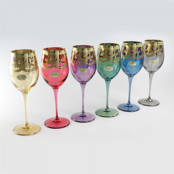 Набор хрустальных фужеров для вина "Меандр Голд" 200 мл, 6 шт, декорированных золотым узором в греческом стиле Барокко.