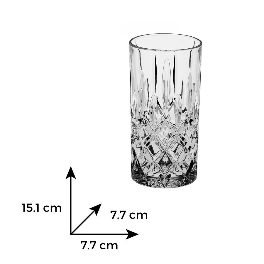 Объем 380 мл делает эти стаканы идеальными для подачи сока, воды, лимонада, коктейлей и других освежающих напитков. Классическая цилиндрическая форма с легкими гранями обеспечивает удобство в использовании, а утолщенное дно придает устойчивость и надежность.