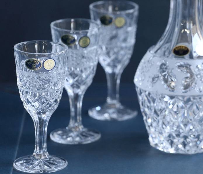 Кристально прозрачный хрусталь, который играет светом и подчеркивает насыщенный цвет напитков.