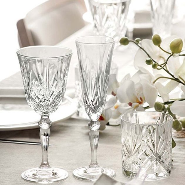В комплект входят бокалы для шампанского, вина и стаканы для виски — идеальное сочетание для сервировки любого стола. Каждое изделие создано так, чтобы подчеркнуть вкус напитка: игристое шампанское заиграет пузырьками, вино раскроет свой букет, а виски приобретёт особую глубину в игре света на гранях стекла.