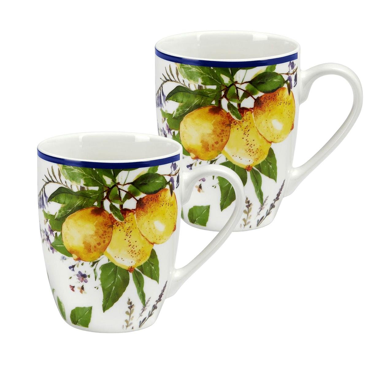 Набор из 2-х фарфоровых чашек для чая с лимонным принтом Soraya 350 мл