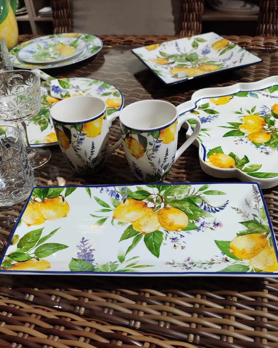 Набор из двух фарфоровых чашек Soraya от Maison украшен солнечным лимонным орнаментом, который наполняет утро свежестью и лёгким настроением. Тёплые жёлтые тона и насыщенная зелень листьев создают атмосферу средиземноморского уюта и гармонии. Объём каждой чашки — 350 мл, что идеально подходит для чая, кофе или ароматного какао. Гладкий фарфор сохраняет тепло напитка и не впитывает запахи, оставаясь безупречно белым даже после многократного использования. Этот набор станет чудесным подарком для ценителей изящной посуды и красоты в деталях.