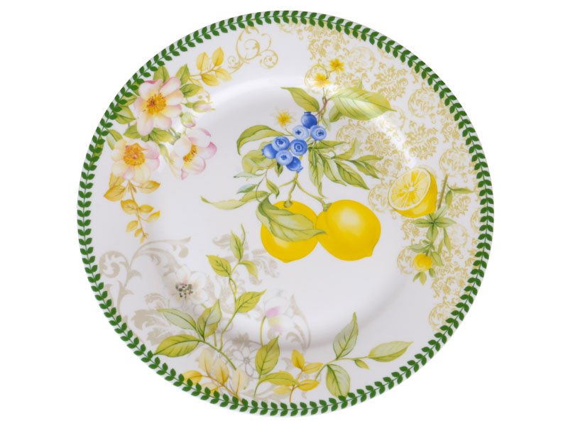 Набор из 2-х фарфоровых тарелок Lemon — это настоящий кусочек солнечного лета на вашем столе. Каждая тарелка украшена ярким и детальным рисунком лимонов, свежей зелени и нежных цветов, который моментально поднимает настроение и создаёт атмосферу тепла и уюта. Диаметр 19 см делает их идеальными для завтраков, десертов или лёгких перекусов — всё, что вы подадите на них, будет выглядеть ещё аппетитнее.