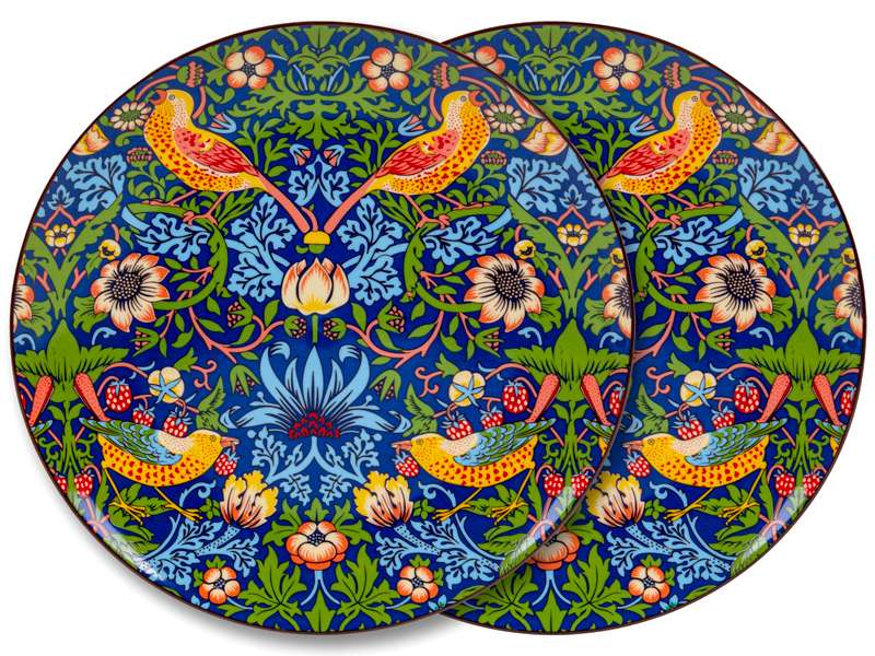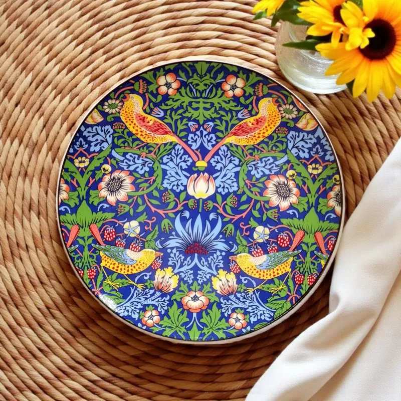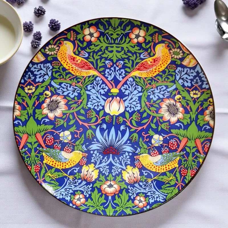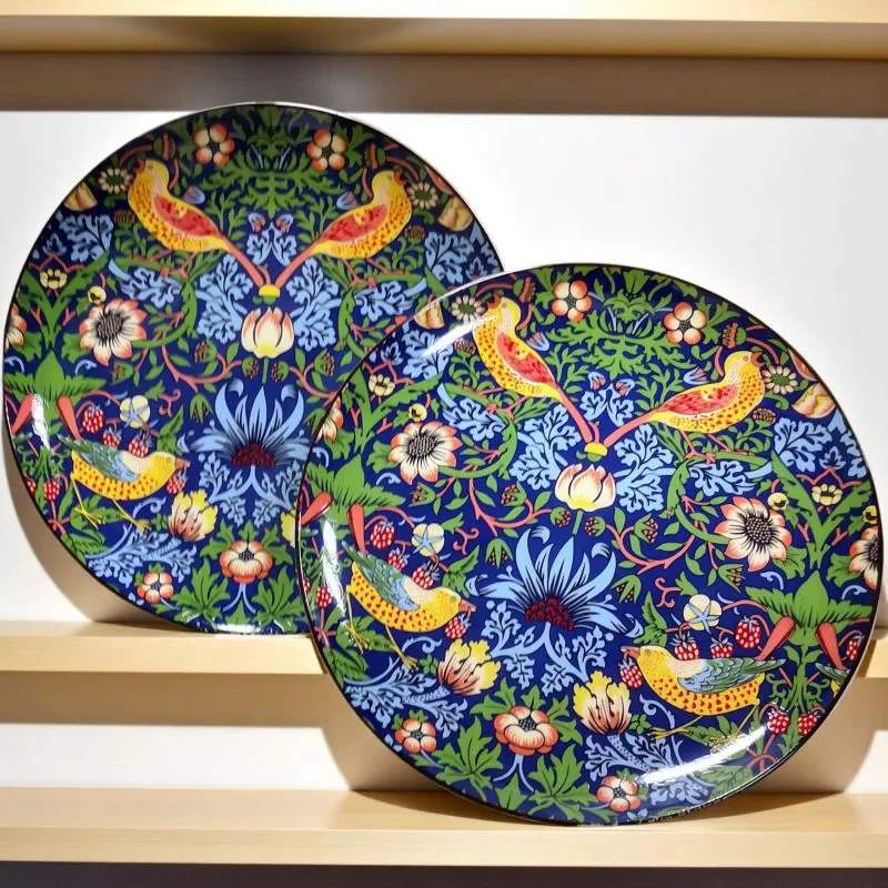 Набор из двух фарфоровых тарелок Morrіs — это торжество цвета и узора, которое оживит любой стол и придаст сервировке особый характер. Глубокий синий фон украшен фантазийными цветами и парными птицами — мотивами, вдохновлёнными творчеством легендарного Уильяма Морриса. Эта композиция дышит жизнью: насыщенные зелёные листья, лазурные завитки и тёплые золотистые акценты создают эффект живописного полотна прямо на вашем столе.