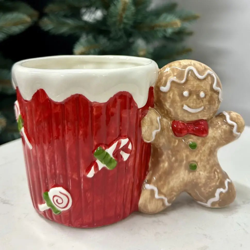 Этот набор из двух керамических кружек по 400 мл создан, чтобы добавить на вашу кухню уют и аромат праздника. Оригинальный дизайн с объёмными фигурками пряничных человечков и рельефными узорами напоминает о детских воспоминаниях, зимних каникулах и сладких угощениях. Красный и розовый цвета дополняют друг друга, создавая яркий акцент на праздничном столе.