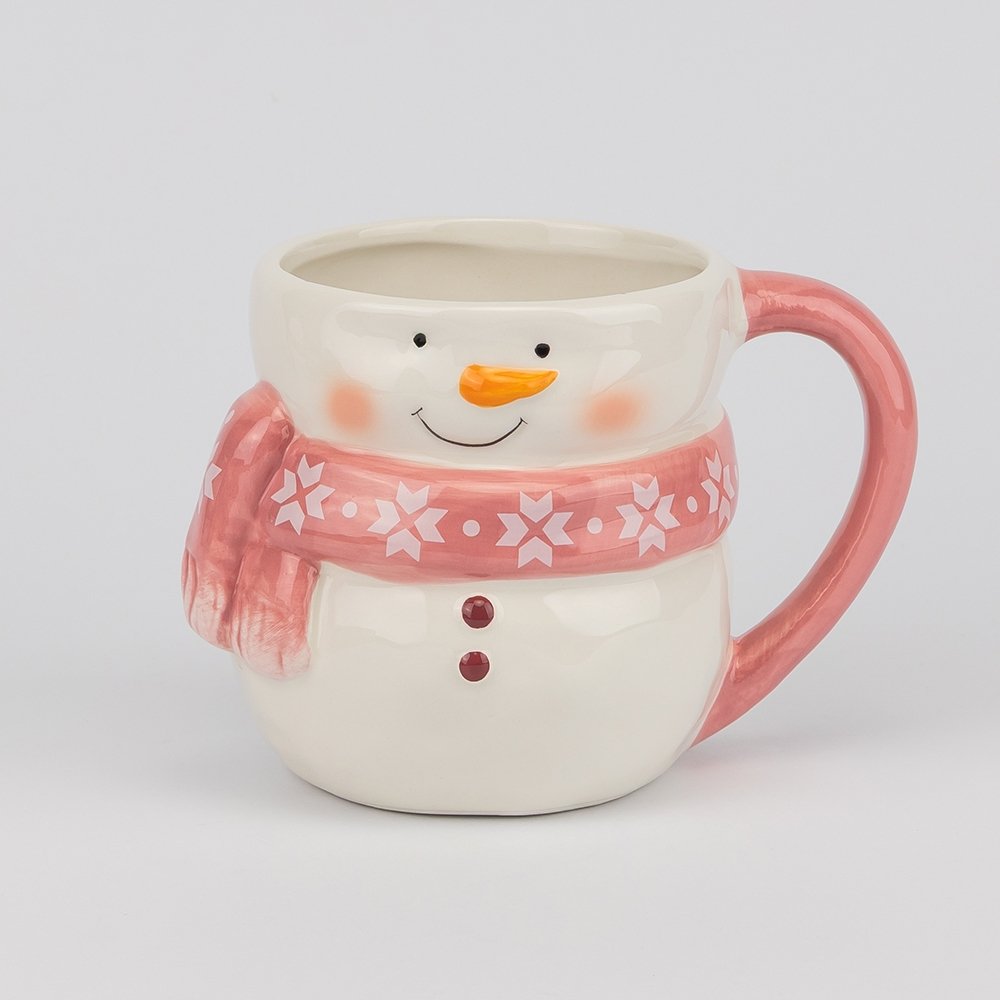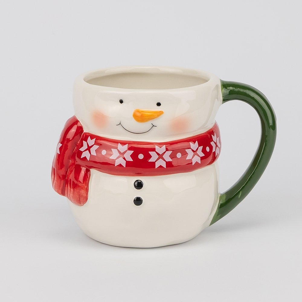 Детали прорисованы с любовью: нежный румянец на щёчках снеговичка, аккуратные пуговицы и скандинавский орнамент на шарфе создают ощущение настоящей зимней сказки. Высота 11 см и комфортная ручка позволяют удобно держать кружку, даже если напиток очень горячий. Керамика сохраняет тепло дольше, так что ваши напитки остаются вкусными и согревающими.