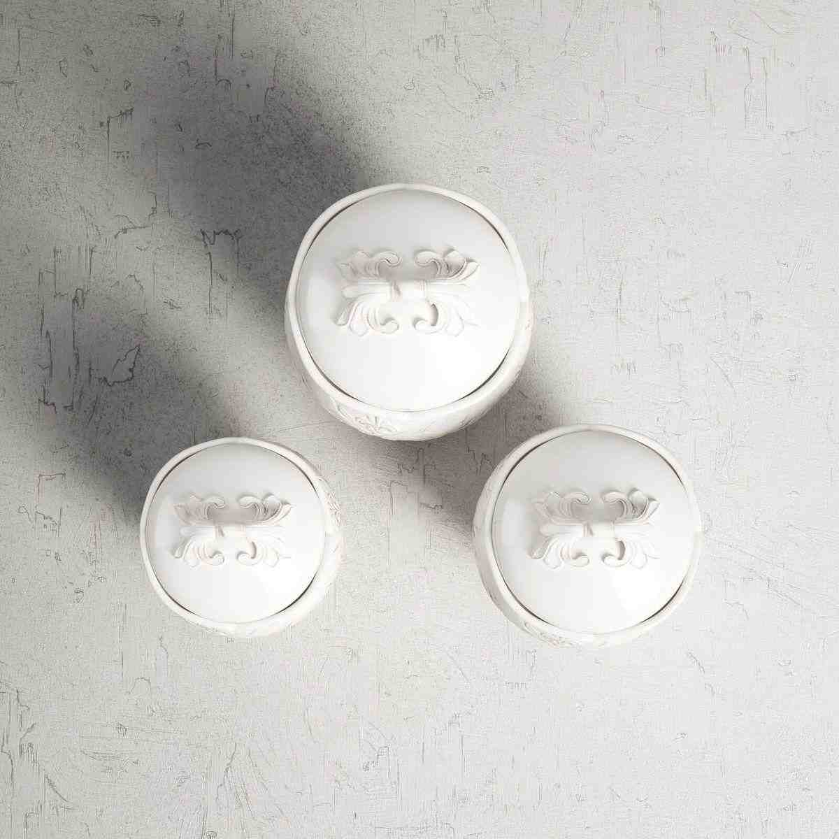 Керамические емкости, представленные в трех размерах, станут роскошным украшением кухни или столовой, оформленной в классическом французском стиле или с элементами бохо, шеби-шик и прованс. Дизайн изящных изделий, похожих на античные произведения искусства, разработала американская художница Памела Гладдинг.