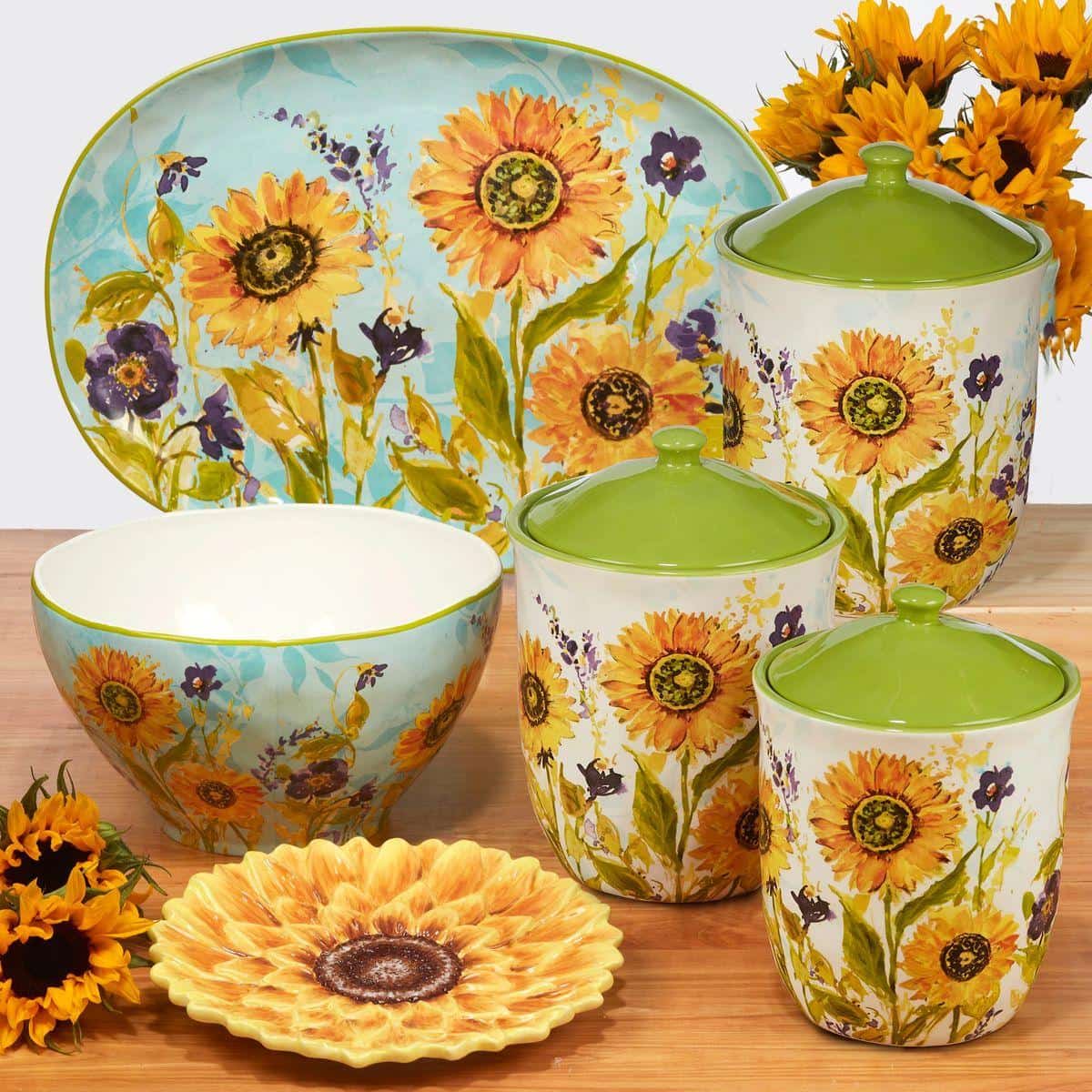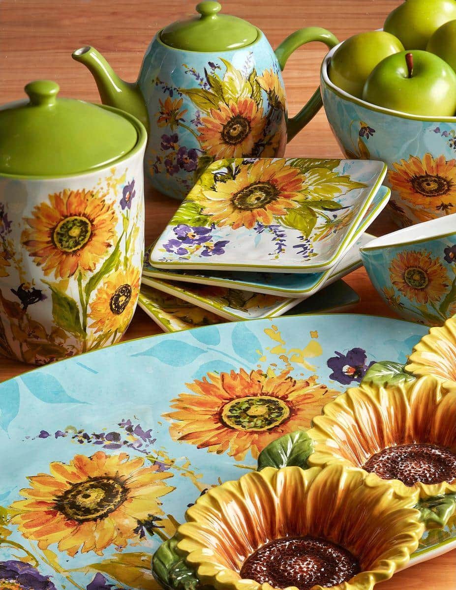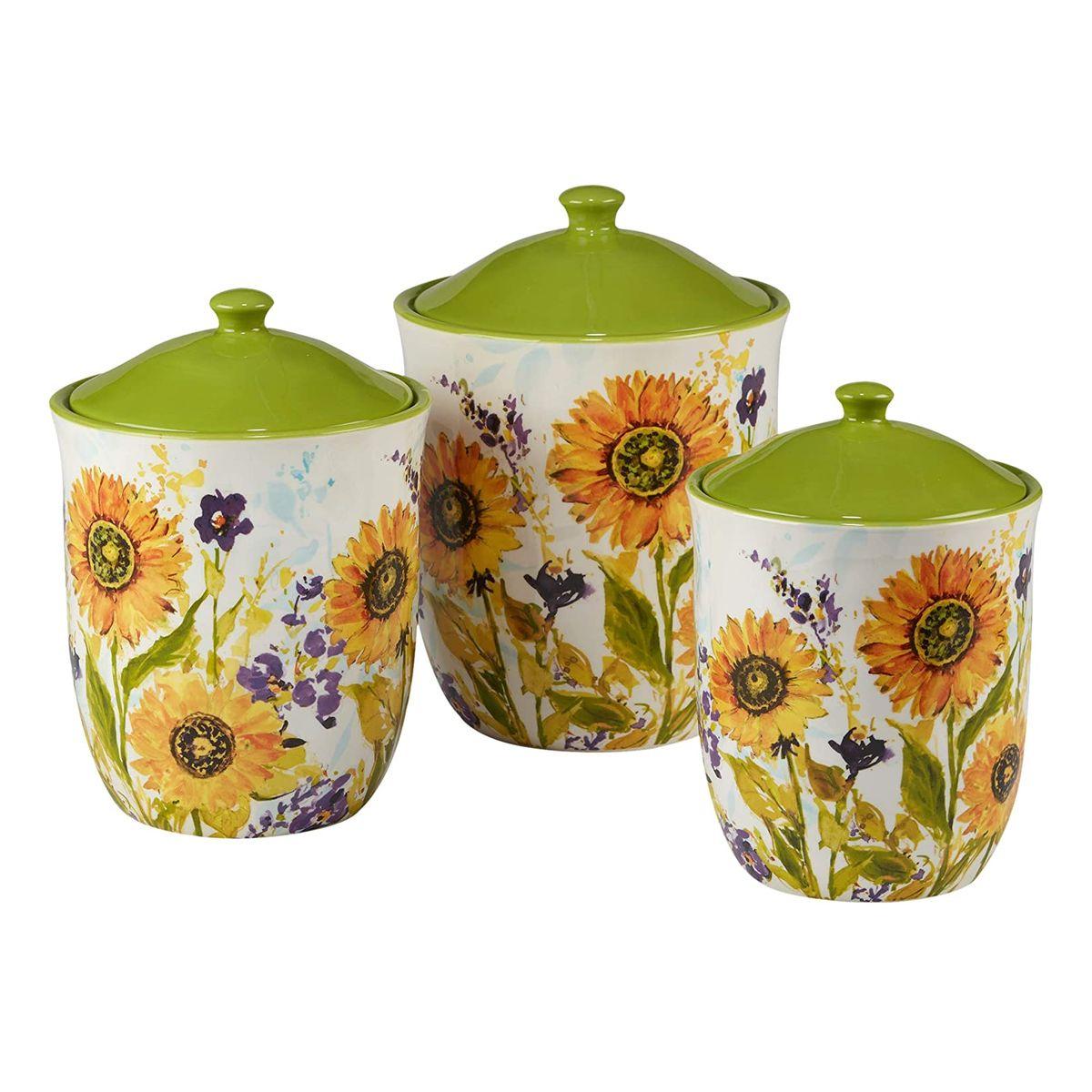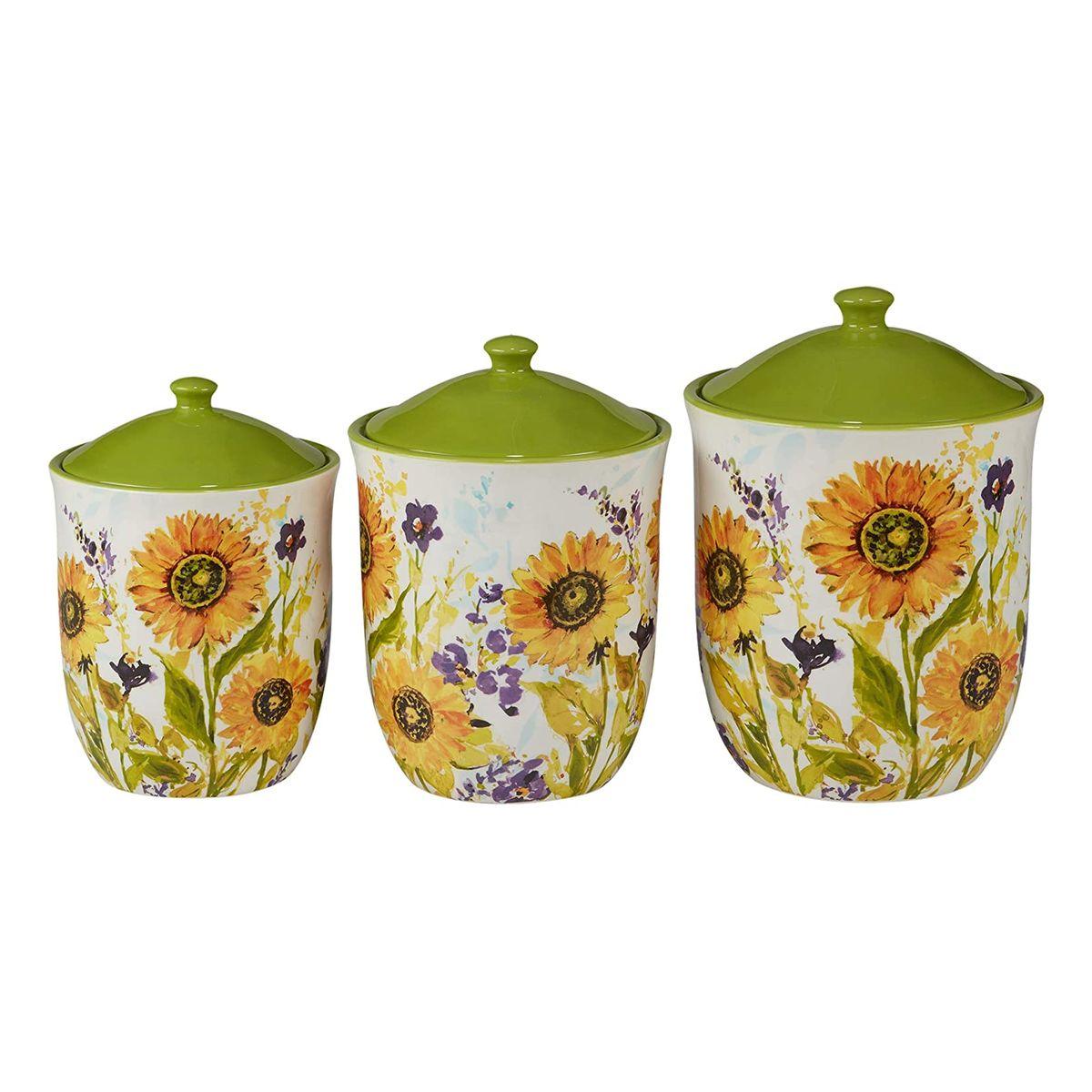 Ємності різного об'єму з колекції «Сонячний сад» стануть не тільки функціональними предметами, в яких зручно зберігати різні крупи, цукор, чай, печиво та приправи, але й стильною окрасою для кухні, оформленої в стилі кантрі або Прованс. На білу поверхню баночок нанесений барвистий малюнок в акварельному стилі з яскравих соняшників та польових фіолетових кольорів. Дизайн ємностей створила відома американська художниця Сьюзан Уінгент для компанії Certified International. Посуд створений із міцної кераміки та покритий стійкою глазур'ю. Кришки ємностей повністю герметичні, тому ваші продукти надійно зберігатимуться.